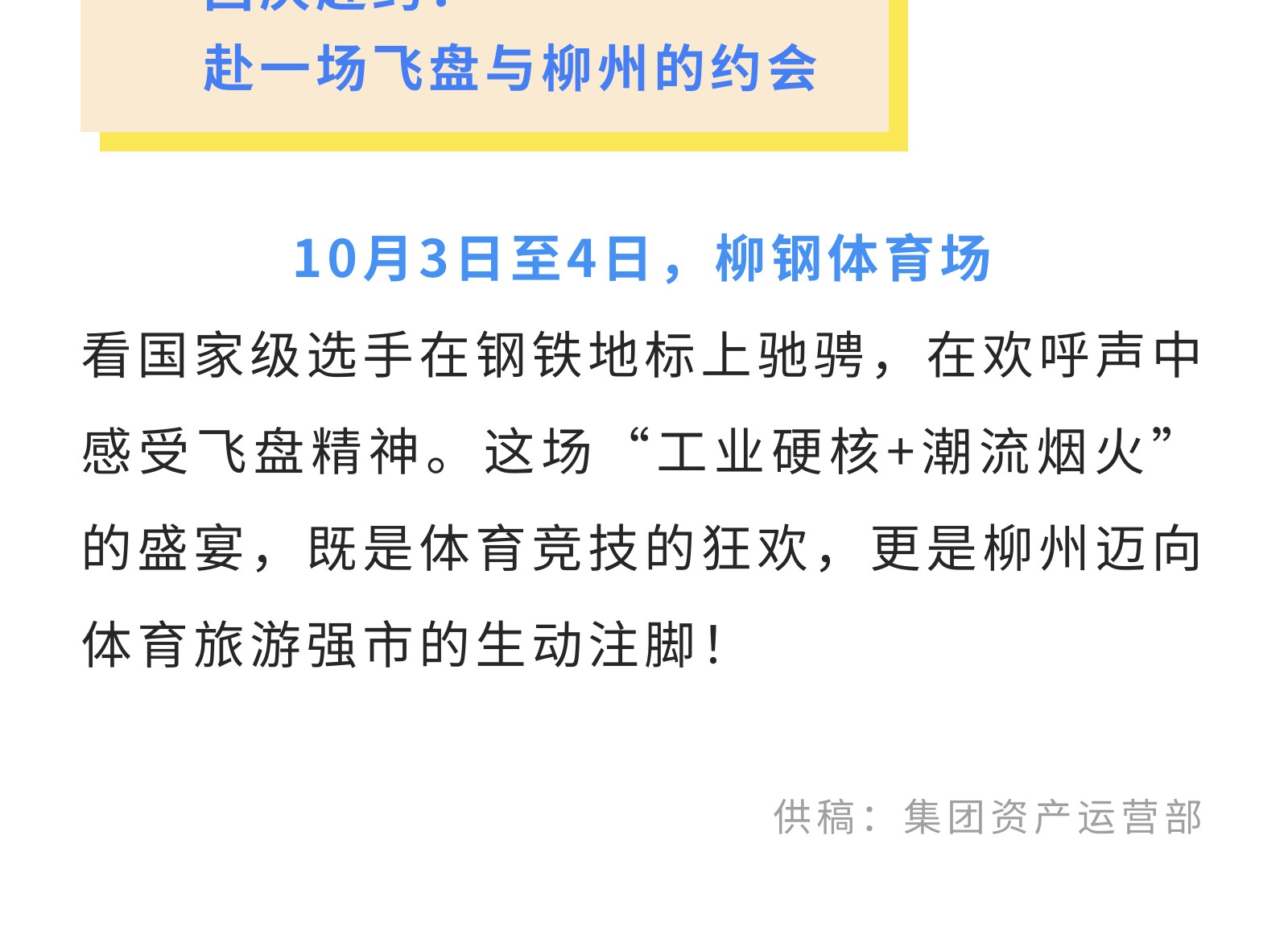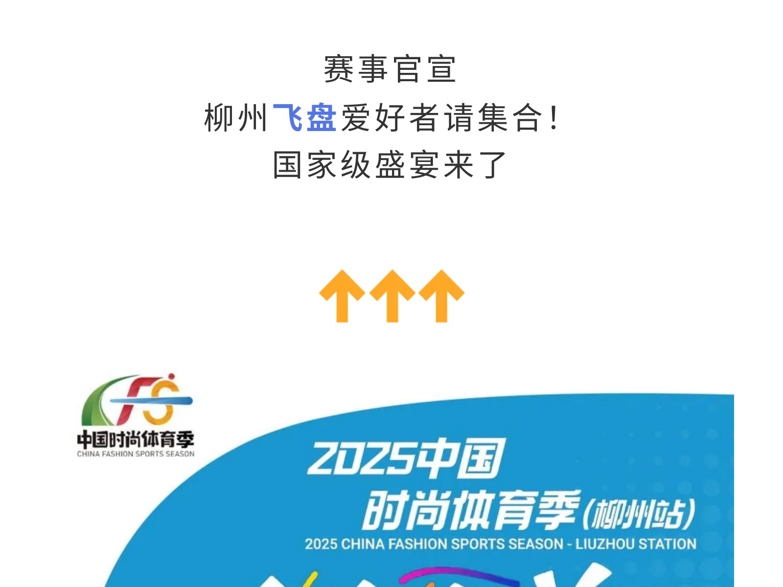 官宣!2025中國時尚體育季(柳州站)飛盤邀請賽來襲!10月3-4日燃情開幕! 發(fā)布時間:2025年09月27日 10時來源:本站原創(chuàng)瀏覽:90 人次