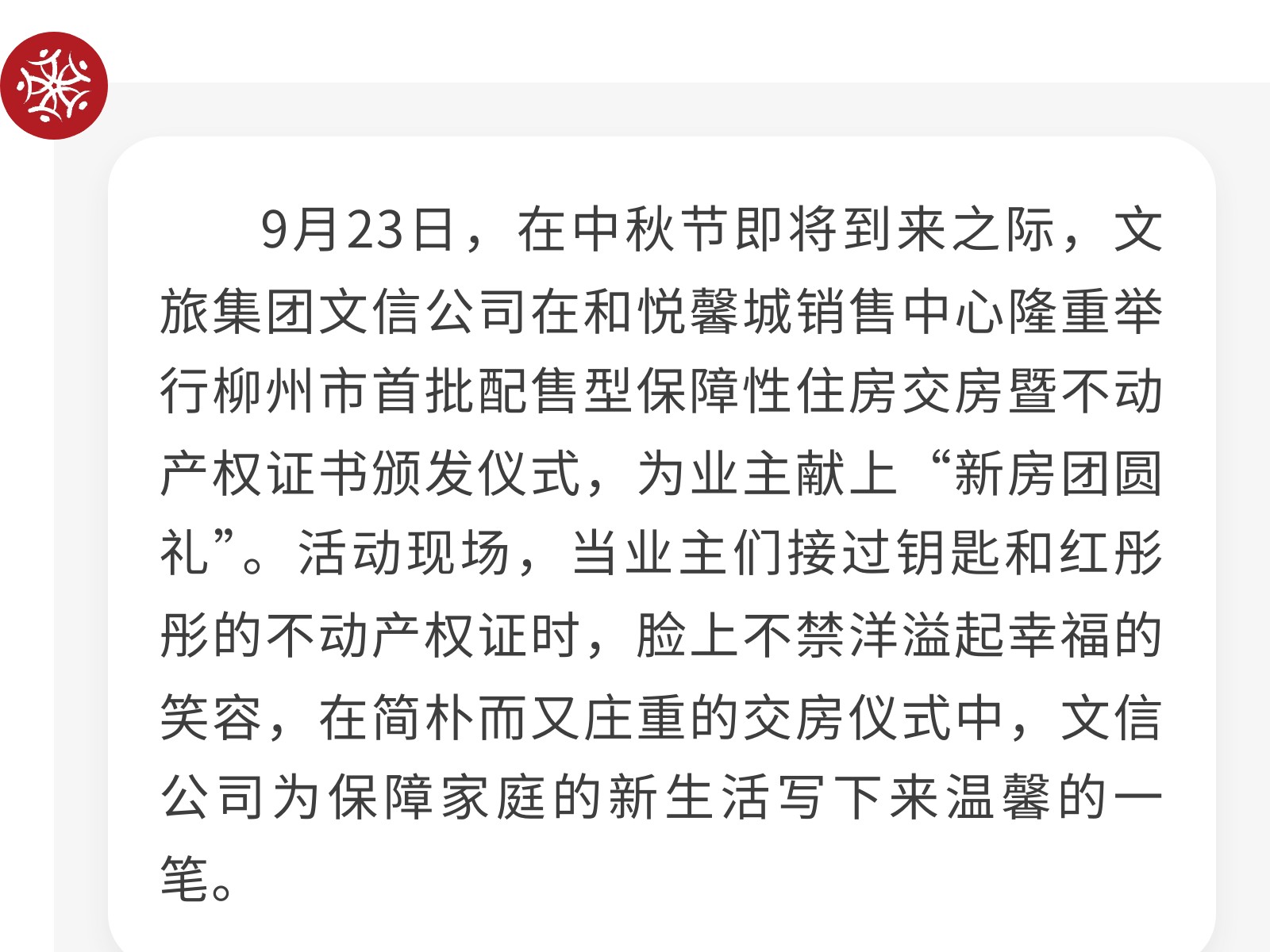我市首批配售型保障性住房實現(xiàn)“交房即交證” 發(fā)布時間:2025年09月27日 10時來源:本站原創(chuàng)瀏覽:93 人次